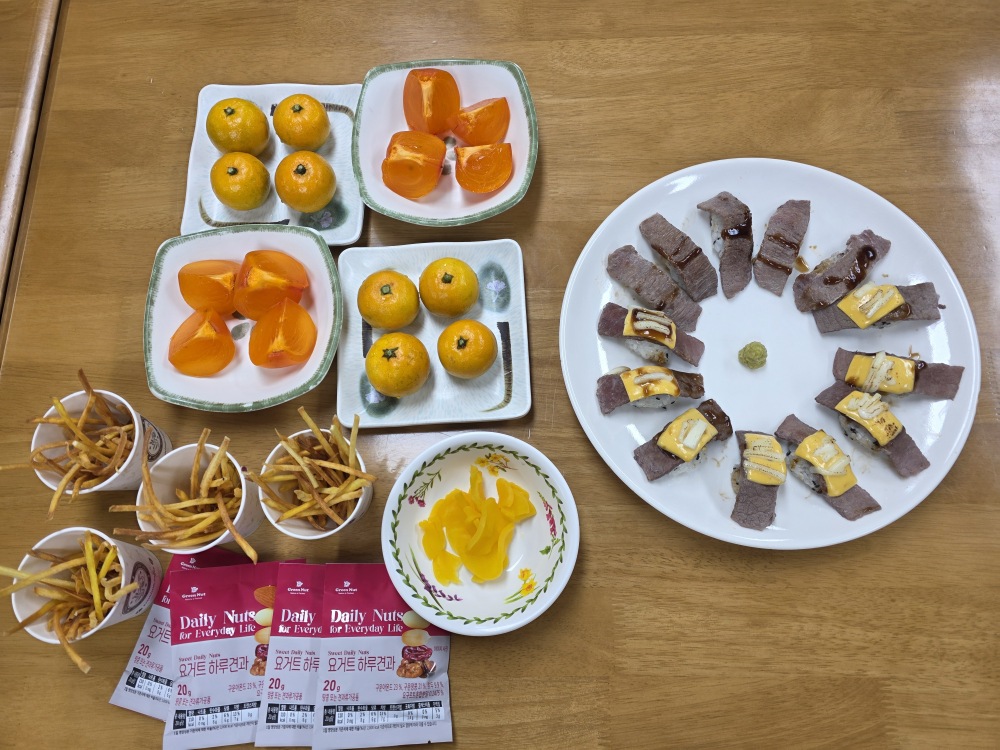 한결회 봉사자분들께서 점심봉사로 쇠고기 초밥을 준비해주셨습니다.